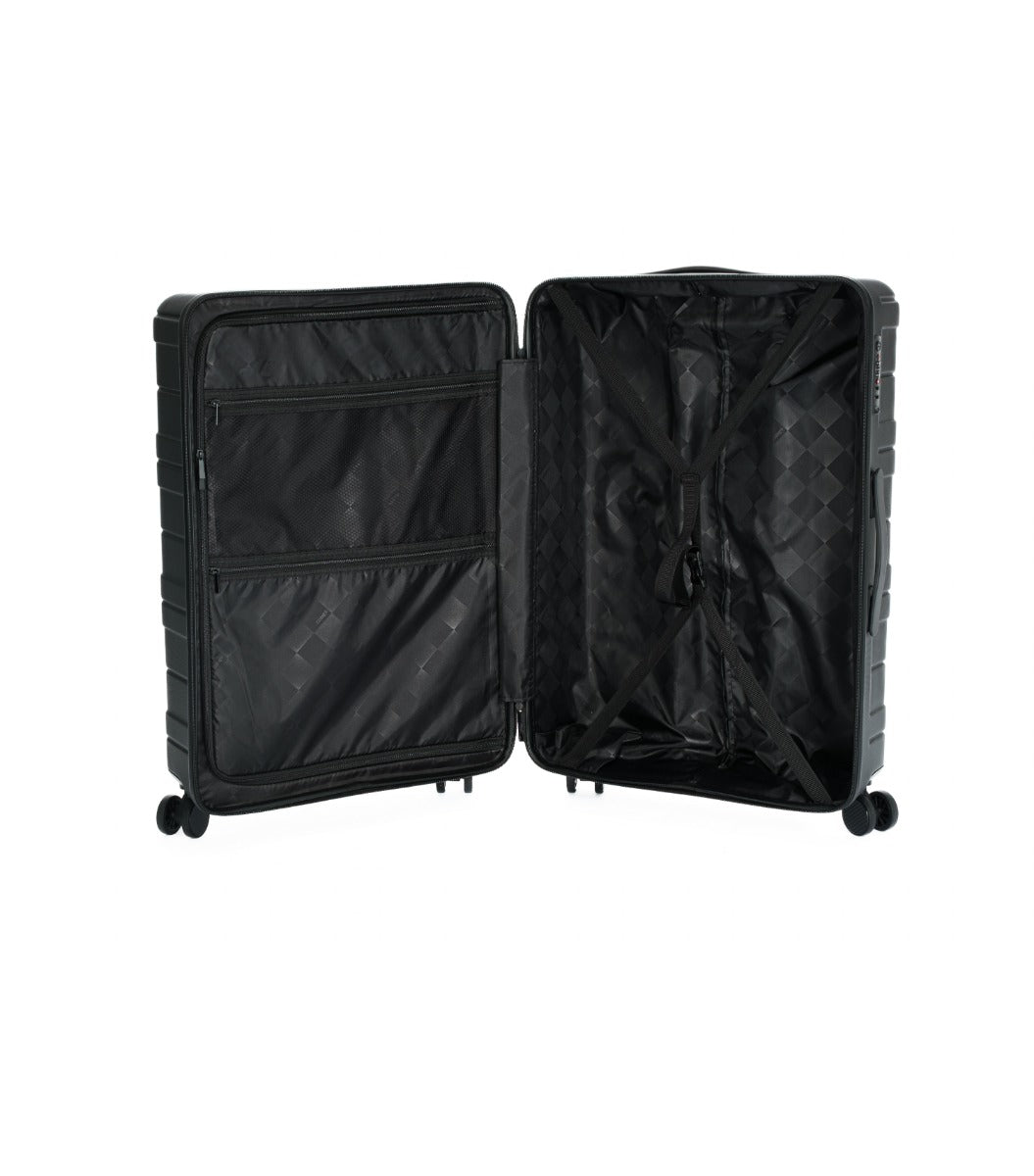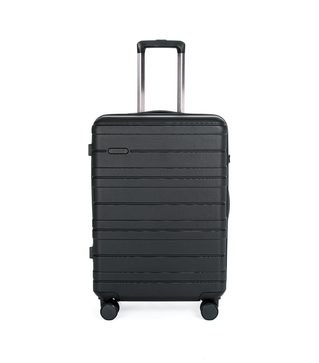 Forestil dig at rulle ubesværet gennem lufthavnen – uden skramlen, uden slingren. CUBIC er designet til netop det. En let, slidstærk og stilren kuffert, der giver dig overblik og ro på hele rejsen. Den fås i tre størrelser: kabine, mellem og stor – og som sæt, hvis du vil være dækket ind til alle slags ture (og samtidig spare lidt).