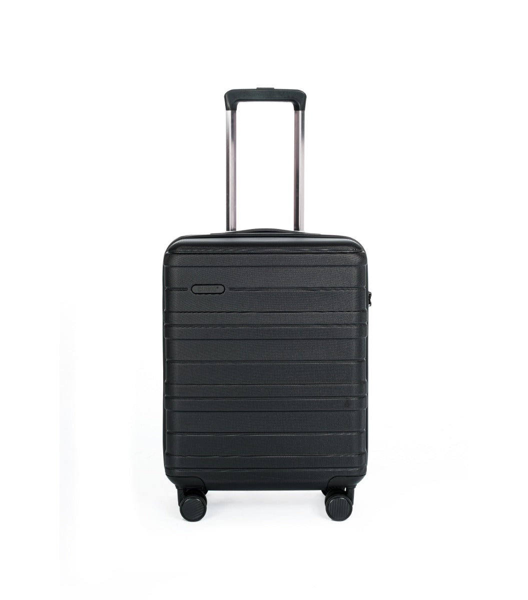 Du kan vælge mellem elegant sort og stilren sølv – begge med et design, der ser lige så godt ud i bagagekøen som på hotellet.