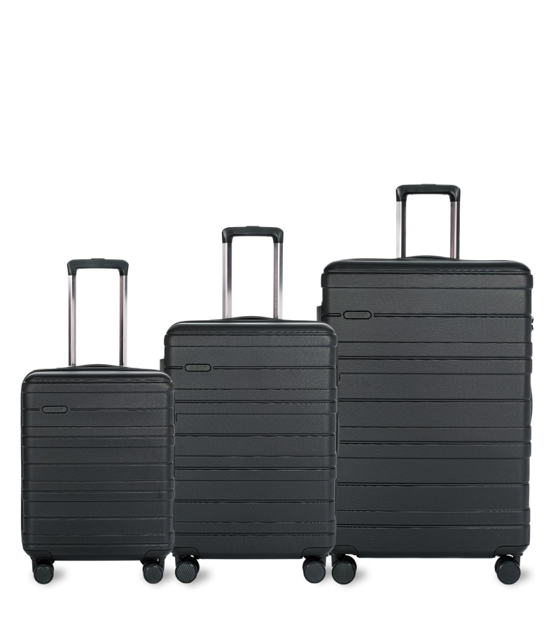 Du kan vælge mellem elegant sort og stilren sølv – begge med et design, der ser lige så godt ud i bagagekøen som på hotellet.