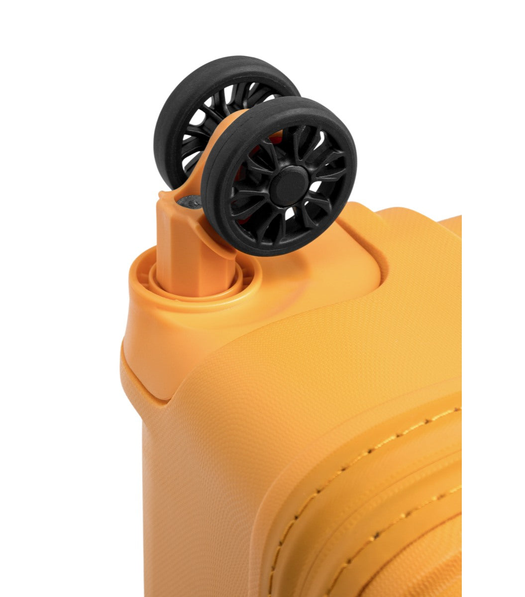 Denne kuffert har større og mere robuste "twin" DualTRAK hjul, som tilbyder en bedre manøvre på alle overflader. Dækket er lavet af et blødt, holdbart og lydløst materiale.